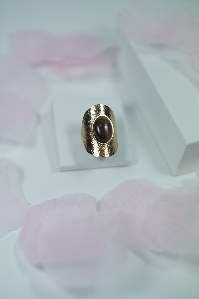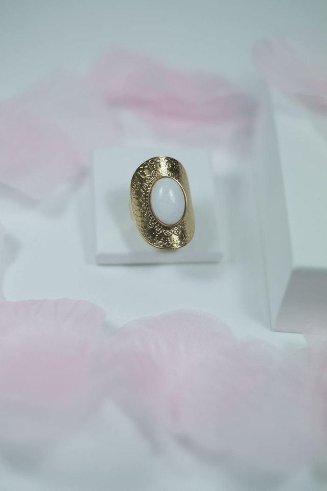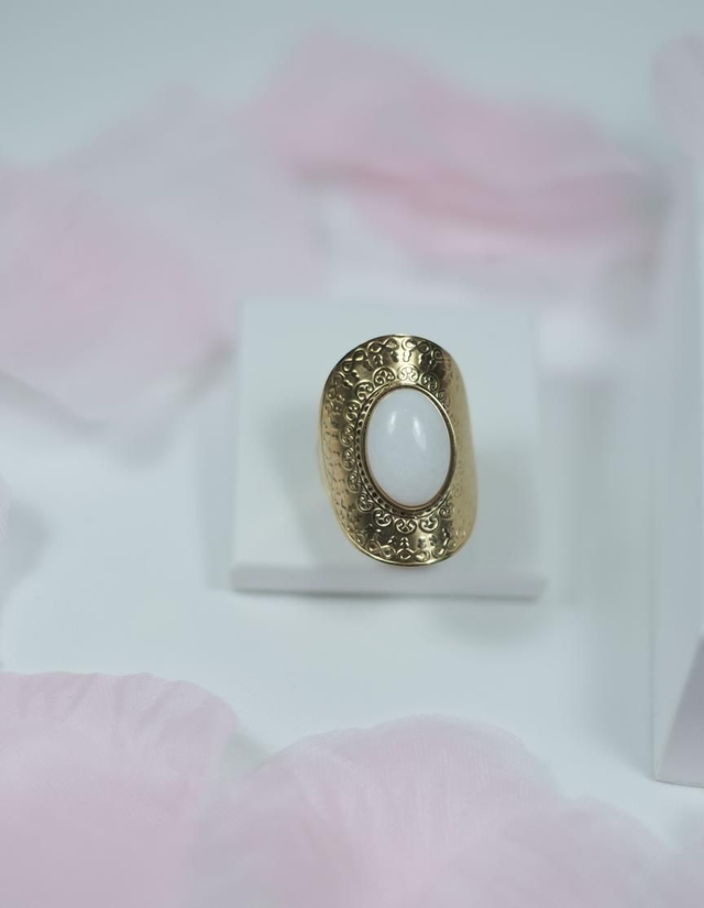 Bague Réglable En Acier Inoxydable Or Et Pierre Fine