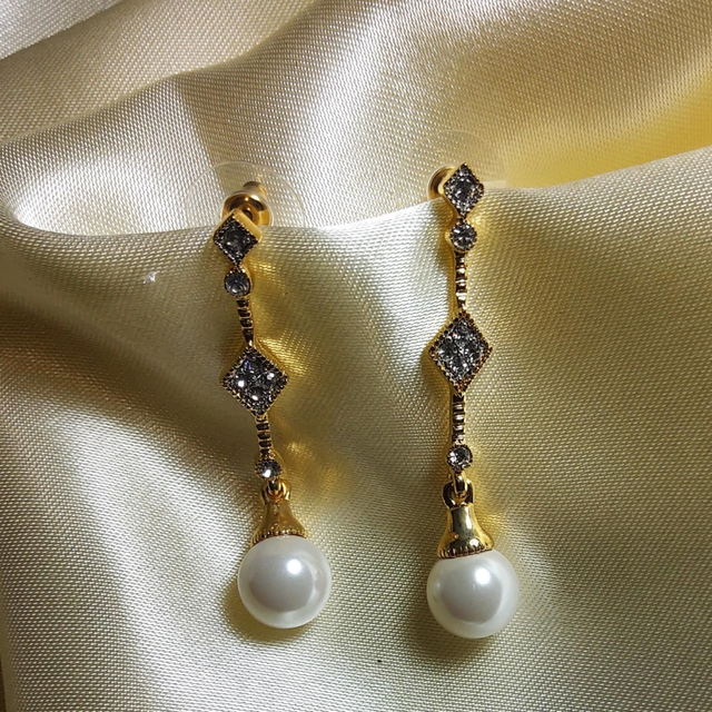 Boucles d’oreilles pendantes acier inoxydable plaqué-or 18 cts et perles de culture d'eau douce. L’acier inoxydable de haute qualité ne rouille pas, ne s’oxyde et ne ternit pas.