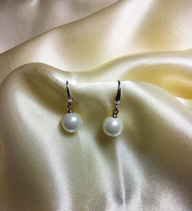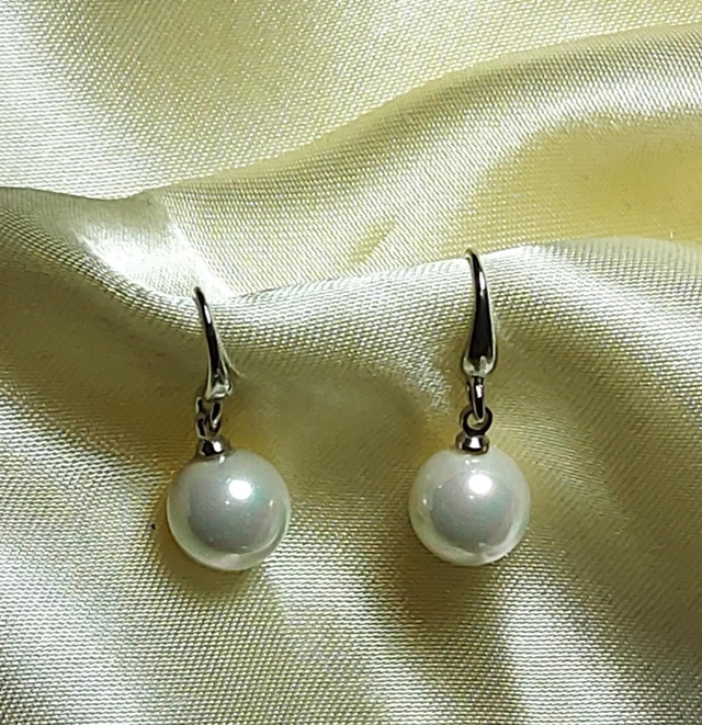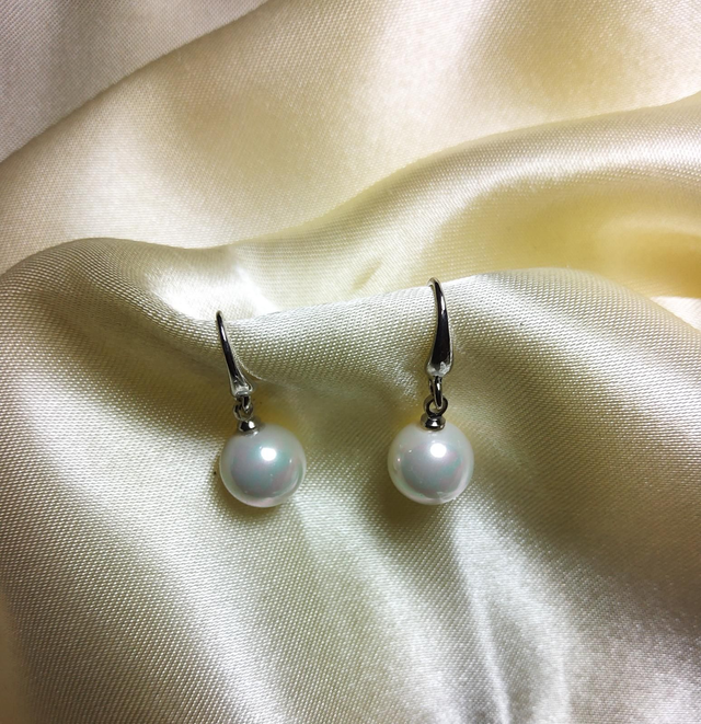 Jolies boucles d’oreilles plaquées rhodium avec véritable de culture d’eau douce.