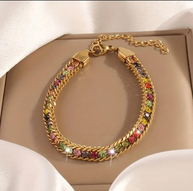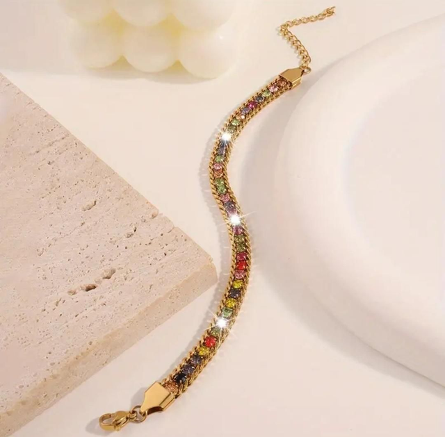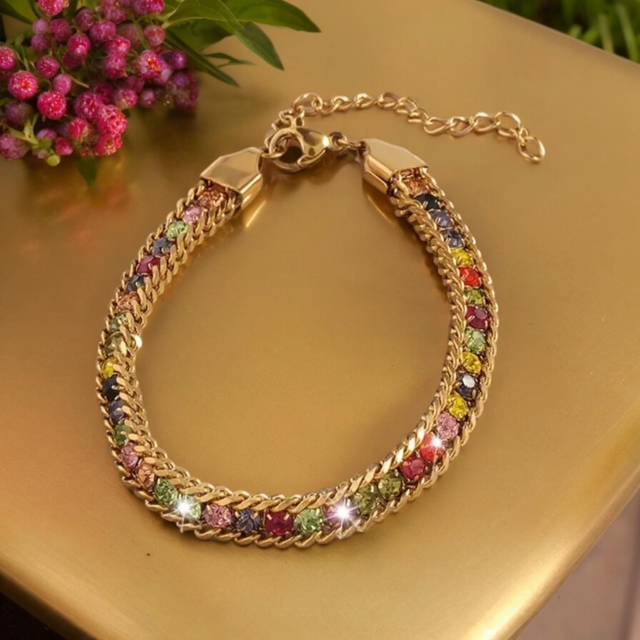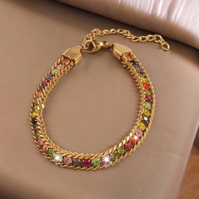Incrusté de faux diamants multicolores scintillants, ce bracelet est idéal pour les fêtes quotidiennes et les vacances.