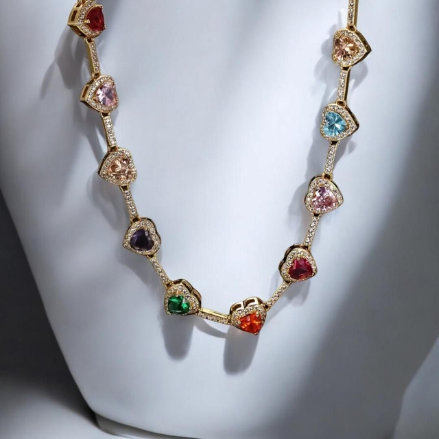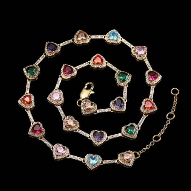 Succombez au charme vintage avec ce collier pendentif en forme de cœur, conçu en cuivre plaqué-or 18K et orné de zircones synthétiques colorées. Ce bijou raffiné, de 10mm de largeur et 43+5cm de longueur ajustable, apporte une touche de luxe à votre tenue. Parfait pour les occasions spéciales telles que les anniversaires et les fêtes, ce collier est le cadeau idéal pour hommes et femmes, rappeurs ou amateurs de mode. Laissez briller votre style et exprimez votre personnalité unique avec ce collier de caractère.