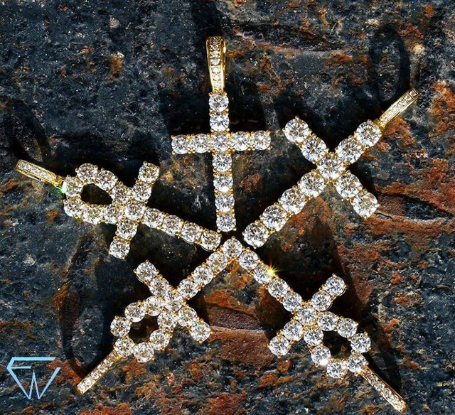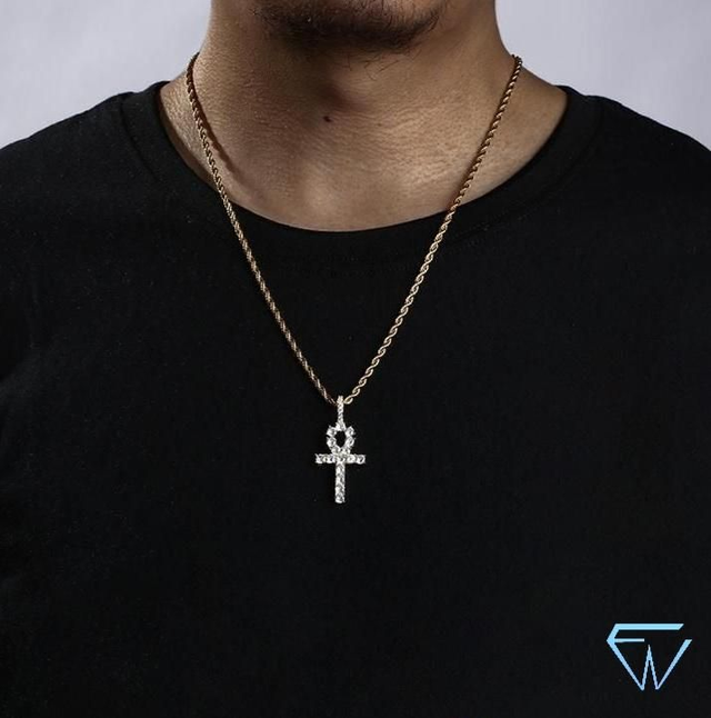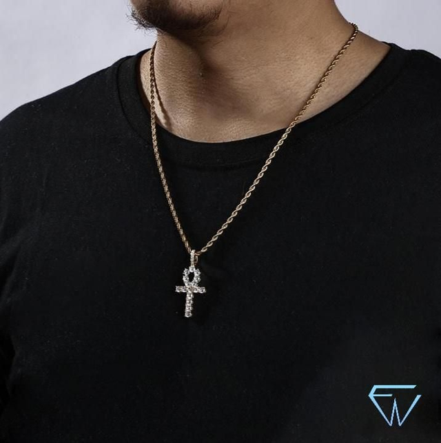 Collier au choix avec pendentif croix ankh en laiton plaqué-or 18K incrusté de précieux zircones de qualité supérieure ayant l’éclat de véritables diamants.