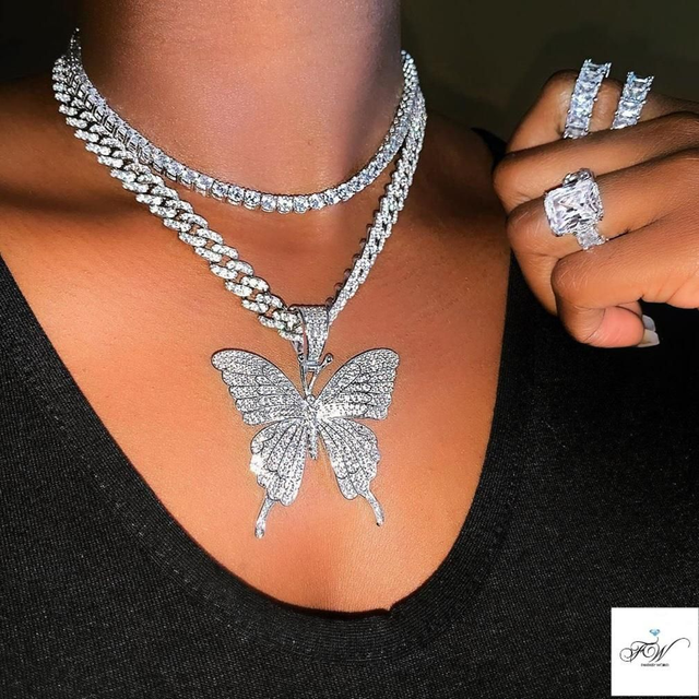 Laissez-vous tenter par ce sublimissime collier pendentif papillon "DIAMOND BUTTERFLY" dont la qualité et le design vous épateront . Fabriqué en laiton recouvert de 5 couches de véritable or blanc 18k, il ne s’oxydera et grâce aux véritables diamants zirconium simulés en laboratoire dont il est incrusté, il gardera indéfiniment son éclat brillant.