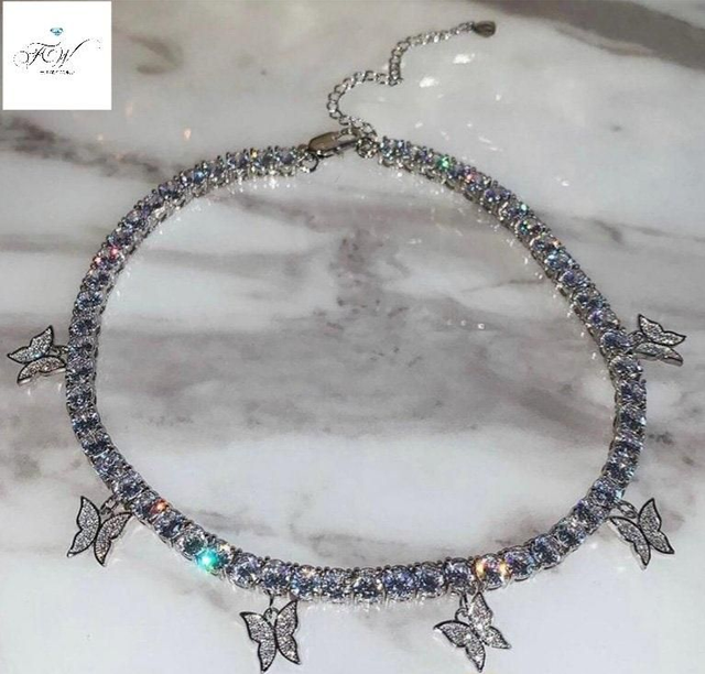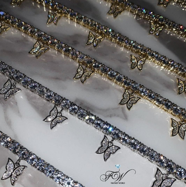 Superbe collier tennis papillon inoxydable, ajustable, de 4mm de large, fabriqué en laiton plaqué d’une épaisse couche d’or 18 carats. Il est confectionné avec des véritables pierres de zircone cubique (simulant l’éclat du diamant) de première qualité qui assure en permanence une brillance extrême de jour comme de nuit.