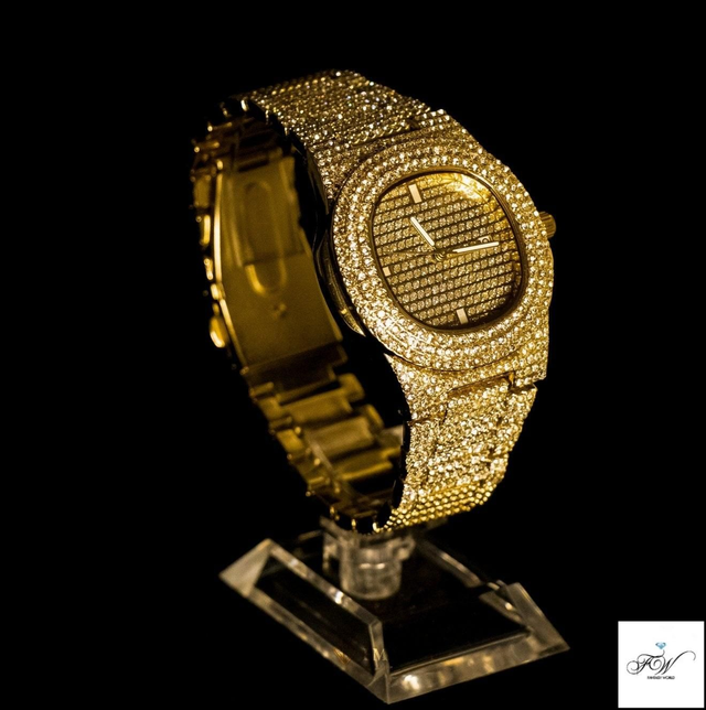 La montre "NAUTILUS" est une réplique en diamant plaqué-or jaune 18k de la célèbre montre "NAUTILUS" de la maison Patek Philippe. Montre à aiguilles en acier inoxydable plaqué or jaune 18K incrusté de simulateurs de diamants CZ précieux, elle conquiert tous les cœurs. Existe en modèle homme et femme. Délai de livraison de 7 à 10 jours ouvrés.