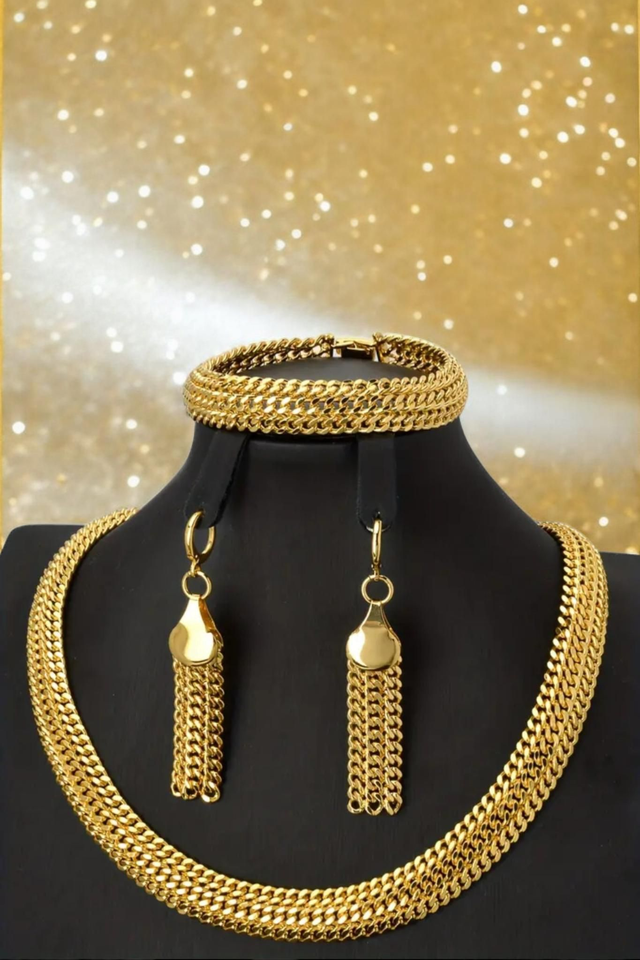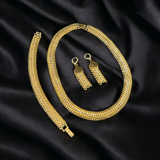Parure de bijoux en cuivre plaqué-or 24k