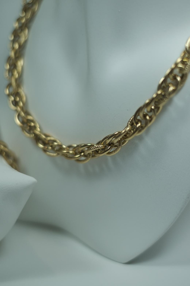 Belle parure de bijoux en acier inoxydable 316L or composée d’un collier, bracelet et boucles d'oreilles assorties. Moderne et en même temps intemporelle, cette parure aux anneaux imbriqués les uns dans les autres révélera votre personnalité et votre unicité. Vous pourrez la portez en toutes situations et en toutes saisons.