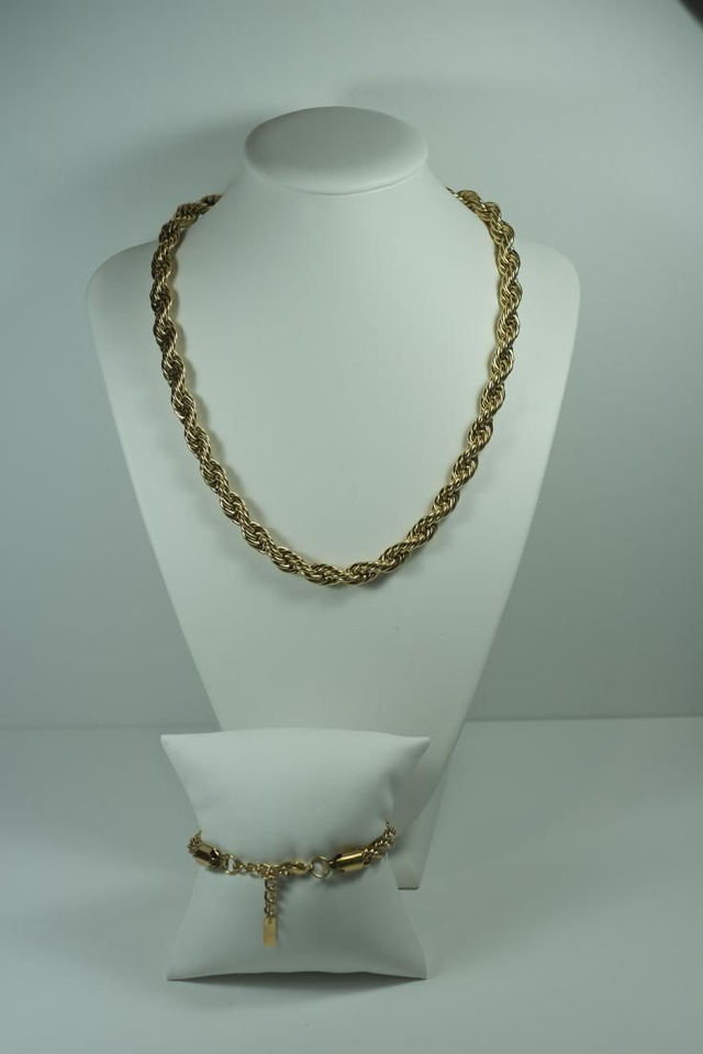 Parure de bijoux tendance composée d’un collier et bracelet assortis maille torsade en acier inoxydable 316L d’excellente qualité.