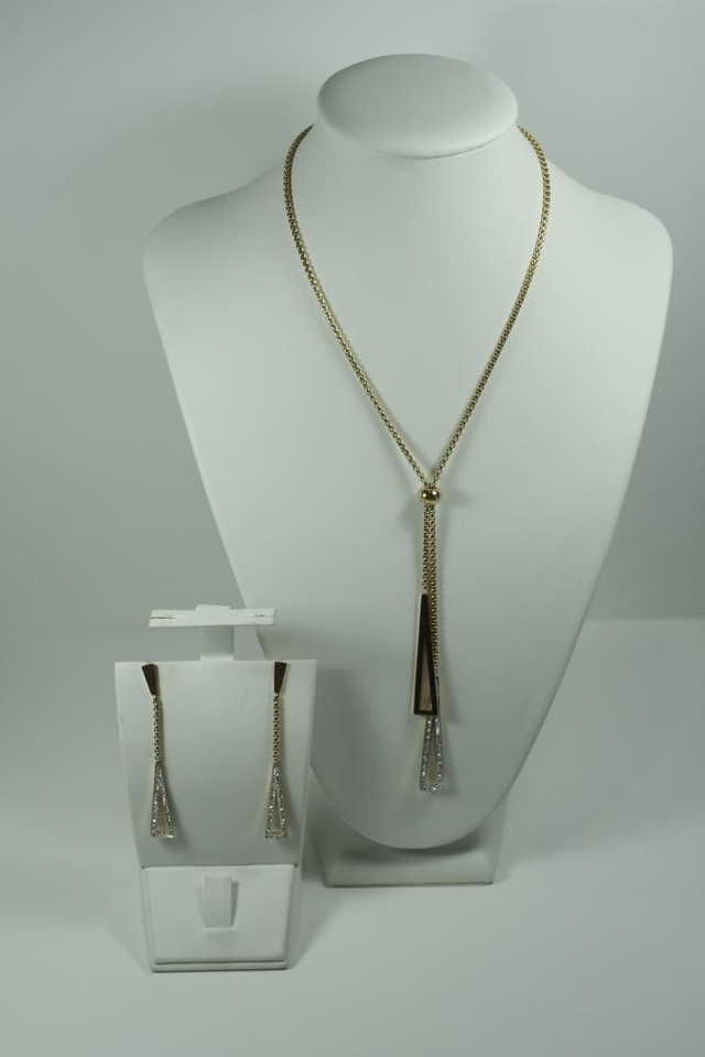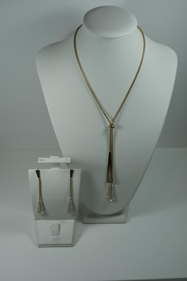 Soyez très élégante en portant ce superbe collier et ses boucles d’oreilles assorties en acier inoxydable 316L or et zirconium véritable... À porter au quotidien comme en soirée.