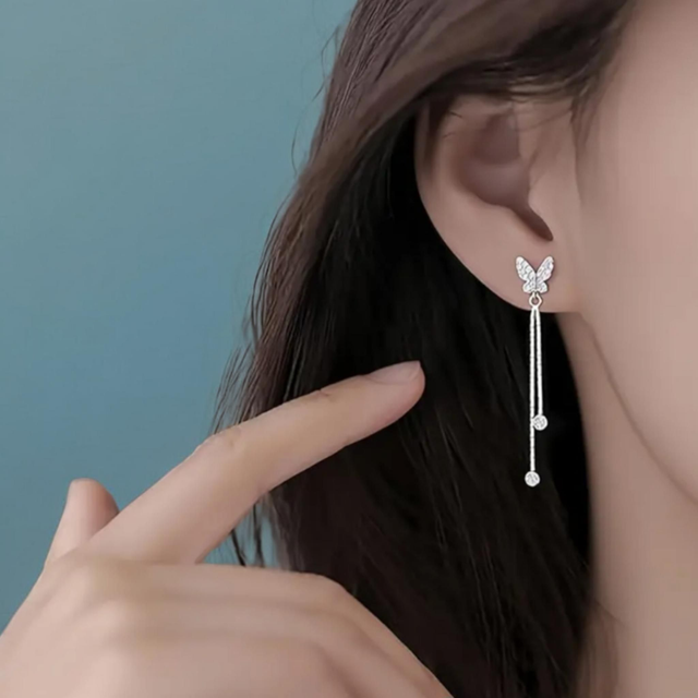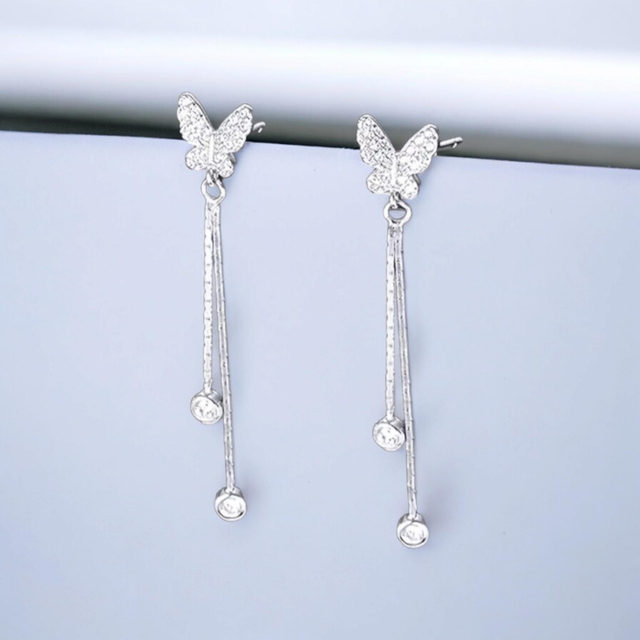 Exquises boucles d'oreilles hypoallergéniques en argent sterling 925 au design papillon. Incrustées de zircons brillants, ces boucles d'oreilles seront idéales en accessoire du quotidien comme pour rehausser une tenue de soirée.